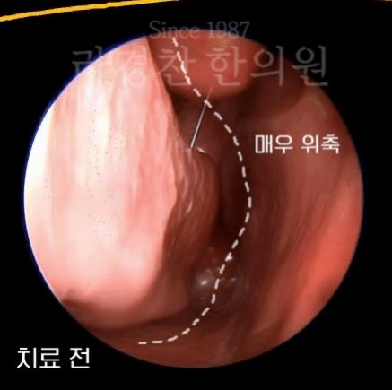 염증성 질환이면 보통 점막 색깔이 붉은색이어야 하는데, 실제로는 오히려 건조해서 창백하고 쪼그라들어 있는 경우가 많아요. 많이 수축되어 있죠? 반복해서 강조하지만 우리 코 내부를 살펴보면 문제를 파악할 수 있어요. 내시경 검사를 통해 모든 문제를 파악할 수 있습니다.