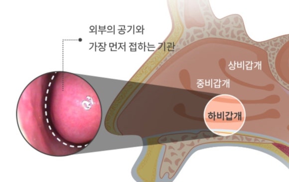 비염 치료의 핵심은 바로 ‘하비갑개’에 있습니다. 하비갑개는 콧속 점막 조직으로, 폐에 최적화된 공기(온도 30~32도, 습도 60~70%)를 공급하는 항온항습 기능을 담당합니다. 비염질환 천식과 관계를 이해하려면 이 하비갑개가 왜 손상되는지 알아야 합니다.
